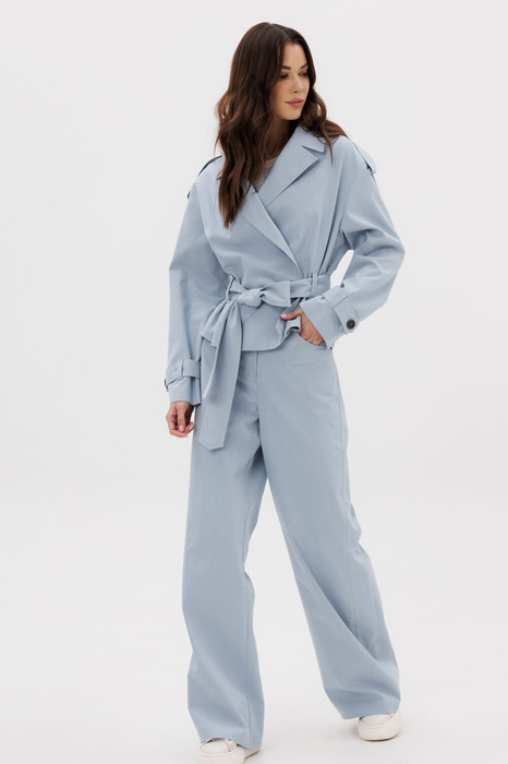 Одеваться в деним с ног до головы - это вовсе не скучно и не странно, а очень удобно и модно! Тотал-деним, это хит модных показов, ну а мы всегда идем в ногу со временем! В данной модели мы заменили классическую джинсовую куртку на жакет, что точно выделит вас из массы, да и прослужит он дольше. Свободный силуэт, рубашечный покрой, классический английский воротник, смещенный борт без застежки. По линии талии фиксирующий пояс шлёвки. По плечевым швам и низам рукавов - отделочные паты. Брюки в классическом джинсовом покрое, с высокой посадкой и 5-ю карманами.