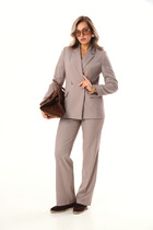 Джемпер из трикотажа. Это одна из базовых вещей осенне-зимнего сезона. Он тёплый, удобный и невероятно комфортный. К тому же, настолько универсален, что его можно стилизовать абсолютно разными способами. Свободный покрой с заниженной линией плеча, рукав рубашечного покроя на отрезной манжете, воротник классический, по центру полочки частичная застёжка-молния. По низу джемпера - отрезной пояс. Бриджи классические, прямые, на отрезном поясе со шлевками, эластичном в области спинки. Передние половинки с талиевыми вытачками и наклонными боковыми карманами.