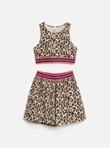 Костюм из кулирки для девочек футболка + шорты. Принт на бежевой футболке в виде котенка, бабочек и надписи, синяя окантовка. Синие однотонные шорты с карманами, длина выше середины бедра. Может быть парой женскому костюму Лимбо (продается отдельно). Размеры от 34 до 40. Возможен заказ товара в розницу.