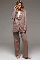Костюм Gowear из футера в стиле smart casual поможет создать в меру строгий и одновременно расслабленный образ. Костюм состоит из жакета и прямых брюк. Жакет прямого силуэта с воротником и лацканами, имеет удобные карманы и застежку на 2 пуговицы. На левом лацкане вышивка-логотип в контрастном цвете. Низ и борта имеют открытые края (эффект необработанного шва), укреплены дополнительной строчкой. Жакет без подкладки. Брюки прямые. На передних половинках - отделочная строчка по стрелкам и удобные боковые карманы. Пояс из ткани кошкорсе, с резинкой и контрастным шнурком.