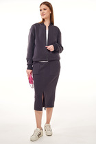 Костюм Gowear из футера в стиле smart casual поможет создать в меру строгий и одновременно расслабленный образ. Костюм состоит из жакета и прямых брюк. Жакет прямого силуэта с воротником и лацканами, имеет удобные карманы и застежку на 2 пуговицы. На левом лацкане вышивка-логотип в контрастном цвете. Низ и борта имеют открытые края (эффект необработанного шва), укреплены дополнительной строчкой. Жакет без подкладки. Брюки прямые. На передних половинках - отделочная строчка по стрелкам и удобные боковые карманы. Пояс из ткани кошкорсе, с резинкой и контрастным шнурком.