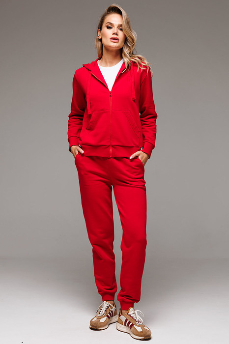 Классический женский спортивный костюм состоит из худи на застёжке-молнии и брюк на манжетах. Всесезонная ткань сделает его любимым в Вашем гардеробе как для дома, так и улицы.