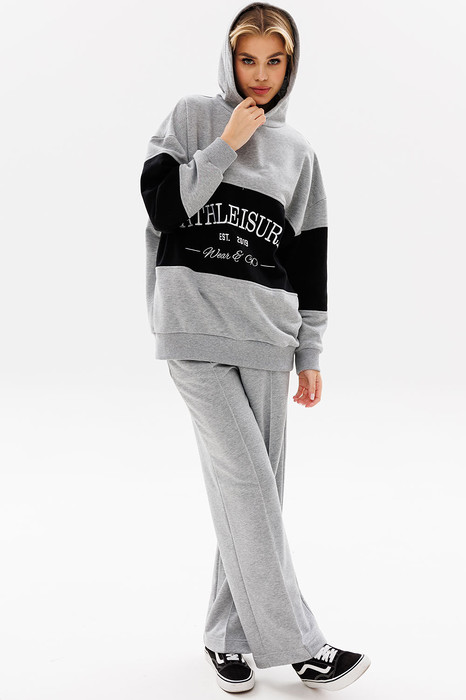 Стильный костюм с с оверсайз худи с контрастной вставкой и вышивкой Athleisure станет любимым в гардеробе. Athleisure - расслабленный и непринужденный стиль, основанный по большей части на спортивных базовых вещах. По сути, это даже не стиль, а способ носить базовые спортивные вещи.