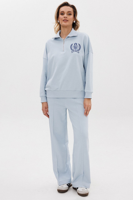 Женский яркий, повседневный костюм, состоящий из оверсайз свитшота с контрастной вышивкой и брюк со стрелками. Это находка для тех, кто ценит свободу, стиль и не хочет отказывать себе в комфорте 24/7.