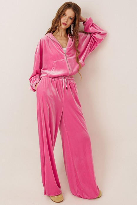 Один из хитов сезона в коллекции от GO - шикарный велюровый костюм! Худи на молнии вместе с широкими брюками - лучшее решение для Вас!