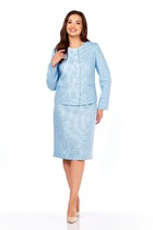 Жилет с центральной застежкой на петли и пуговицы, без вортника, с круглым вырезом горловины. По переду с рельефами, выходящими из проймы до низа, на уровне линии бедер расположены прорезные карманы с листочками и клапанами. По спинке со средним швом и рельефами, выходящими из проймы до низа. Юбка без пояса, верхний срез обработан обтачками. Заднее полотнище со средним швом, застежкой на потайную молнию в среднем шве.