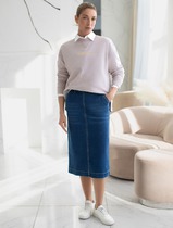 Джинсовая юбка прямая с разрезом и декоративной стиркой из эластичного денима