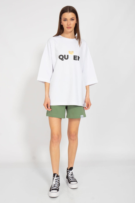 Костюм оверсайз с классическими прямыми шортами средней посадки с  карманами в боковых швах. Свитшот оверсайз с приспущенным рукавом Ткань 2-х ниточный футер внутренним слоем из хлопка, качество Пенье, плотность 265 г.м2