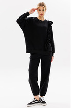 Костюм ОВЕРСАЙСЗ, утепленный на флисе. Худи Oversize модели 4057 с капюшоном на подкладке из основной ткани, с боковыми накладными карманами, с боковыми разрезами по низу изделия, удлиненная спинка. Брюки модели 4056 средней посадки зауженные к низу с  карманами в боковых швах. Обработка низа брюк  резинка. Ткань футер (3-х ниточный) с внутренним слоем утепленным начесом, качество Пенье, плотность 395 г.м2