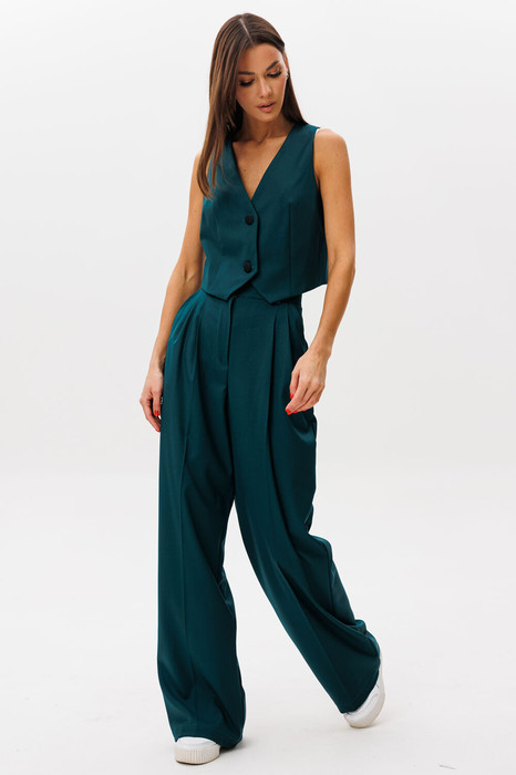 Этот костюм, состоящий из жилета классического кроя и прямых брюк, выполнен из костюмной ткани. Жилет подчёркивает утончённость и изысканность вашего образа, а прямые брюки создают элегантный и плавный силуэт. Классическая костюмная ткань премиального качества придает костюму эффектный и гламурный вид, идеально подходящий для офиса, вечерних мероприятий и торжественных случаев. Этот ансамбль станет центром внимания, подчёркивая ваш безупречный стиль и уверенность.