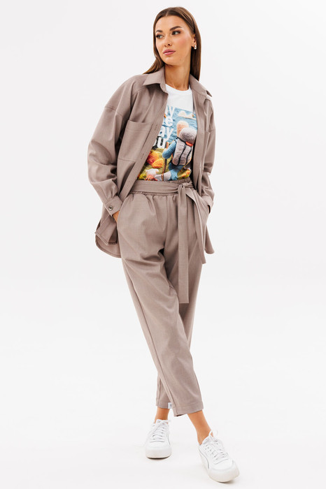 Представляем костюм состоящий из блузы и брюк.  Блуза свободного кроя, которая идеально сочетает в себе элегантность и комфорт. Брюки свободного кроя “Urban Elegance” – идеальное сочетание офисной строгости и свободного спортивного стиля. Этот костюм изготовлен из высококачественной костюмной ткани, что обеспечивает ему долговечность и элегантный внешний вид.