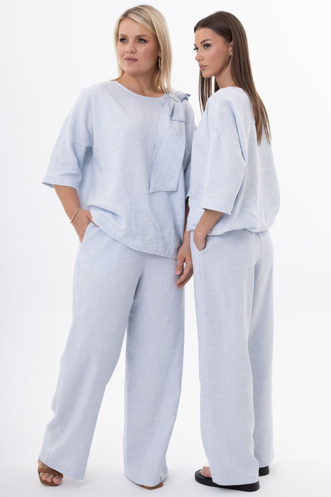 Женский костюм из льна с вискозой | Белорусский комплект: джемпер с бантом и брюки