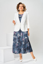 Костюм состоит из майки и шорт. Майка декорирована кокетками на плечах и треугольными вставками в боковых швах полочки. Шорты с прорезными карманами