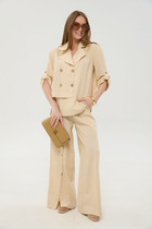 Стильный спортивный костюм, комбинированный двумя типами ткани, идеальное сочетание стиля и удобства. Бомбер свободного кроя, что придает легкости в движении, застежка на молнии, воротник стойка, рукав втачной на спущенной пройме с отделкой в цвет брюк, прорезные карманы с листочкой. Брюки из костюмной ткани с прорезными карманами, пояс на резинке, в боковых швах отделочный кант в цвет бомбера.