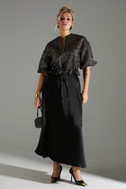 Костюм двойка, идеальный выбор для важных деловых встреч, корпоративных мероприятий и незабываемых вечерних выходов. Изысканный комплект двойка выполнен из качественной стрейчевой ткани. Жакет "BLAZER" без застежки на подкладке, рукав втачной расширенный к низу с декоративной шлицей. Платье полуприлегающего силуэта с рельефами и коротким втачным рукавом, по спинке выточки и потайная молния в среднем шве и разрез. Изящность комплекту придает контрастная отделка воротника, планок, разреза шлицы и съемного декоративного цветка ручной работы подчеркнет вашу неотразимость и безупречный вкус.