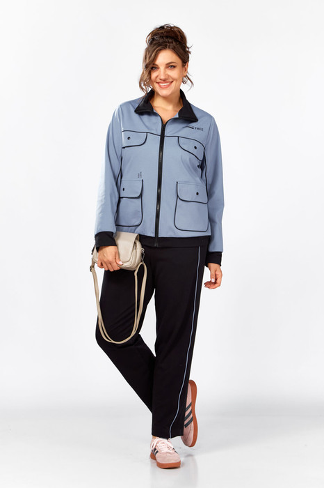 Стильный, удобный, трикотажный, спортивный костюм для активной повседневной жизни, в котором сочетаются модный дизайн и комфорт. Бомбер свободного силуэта на молнии, воротник отложная стойка. Накладные карманы, клапаны, кокетка и рукава декорированы отделаны контрастным черным кантом, в цвет брюк. Брюки на резинке с боковыми карманами и подрезами с декоративным кантом. Костюм отлично садится и скрывает недостатки фигуры из-за хорошо продуманных конструктивных линий и пропорций.