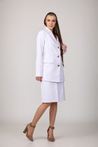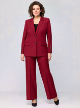 Комплект женский состоящий из футболки и брюк. Футболка  прямого силуэта со средним швом и асимметричными горизонтальными подрезами. Нижняя правая часть переда с одной складкой, по левой части переда сборка. Спинка со средним швом и горизонтальным подрезом на левой стороне, от подреза спроектирована сборка.  Рукав втачной, одношовный, короткий. Вырез горловины круглый, окантован основной тканью, по горловине спинке завязки.