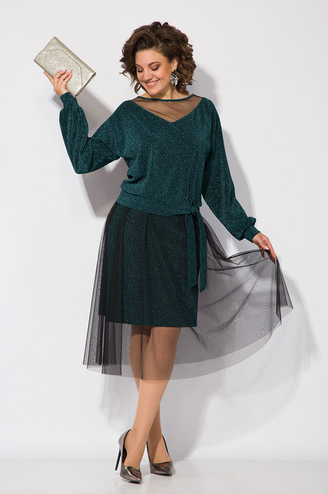 Роскошный нарядный юбочный костюм, состоящий из блузки и юбки! Модель выполнена из мягкого, комфортного трикотажного полотна с изнанки однотонного, с лица с эффектом мерцания. Блузка с округлым вырезом горловины, с V-образной кокеткой из сетки. Плечевой пояс спущенный с длинным рукавом присборенным на манжеты. Низ оформлен притачной планкой-поясом, переходящий в завязку. Юбка французской длины, за колено; на притачном поясе, расклешена к низу. Верх выполнен из сетки, низ выполнен из основной ткни. Мерцающая ткань, создают завораживающий эффект, поможет Вам выделиться из толпы, привлечь восхищенные взгляды, и быть в центре внимания на любом мероприятии!