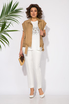 Блуза свободного кроя, с цельнокроеным рукавом. Низ рукава на притачной манжете. По переду блузы молния, накладные карманы. Воротник стойка. Брюки заужены к низу. На передних половинках брюк боковые карманы с наклонным входом. Верхний срез брюк на притачном поясе на резинке с тесьмой из основной ткани.