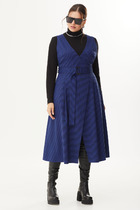 Комплект выполнен из хлопкового джинса. Куртка прямого силуэта, со спущенной линией плеча. Спереди центральная застежка на петли и пуговицы, по передним половинкам накладные карманы. Воротник стояче отложной. Низ рукава на притачной манжете, с застёжкой на петлю и пуговицу. По низу куртки вставлен шнур. Куртка без подкладки. Брюки на притачном поясе, на резинке, заужены к низу. Застежка брюк спереди по типу «гульфик». По бокам карманы с наклонным входом. Сзади накладные карманы.