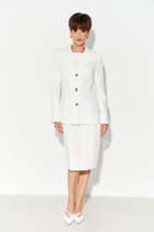 Жакет приталенного силуэта. V-образный вырез горловины, центральная застёжка на петли и пуговицы. Перед и спинка с вертикальными рельефами от плеча. Рукав втачной со сборкой в верхней части. По низу притачная манжета, собранная на резинку. Жакет частично на подкладке (перед и спинка). Брюки свободного кроя, на притачном поясе с эластичной тесьмой и потайным шнуром из основной ткани. В боковых швах карманы “ хулиганы”.