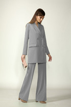Джемпер с воротником стойкой. Перед с дизайнерскими отрезными деталями и с декоративной тесьмой и сеткой в верхней части. Спинка с талиевыми вытачками. Рукава втачные.