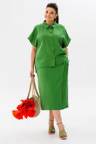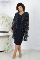 Двубортный жакет умеренного объема, полуприлегающего силуэта. Карманы прорезные, в рамку с клапаном. Спинка имеет плечевые вытачки, средний шов со шлицей. Рукава двухшовные, длинные. Воротник – стойка, переходящая в край борта, имеющий V-образную форму. Застежка на прорезные петли и пуговицы. Жакет полностью обработан притачной подкладкой. Длина изделия до середины бедра. Длина по спинке 71 см, длина рукава 61 см. Брюки умеренного объема, прямого силуэта. На передних половинках брюк заутюжены стрелки, переходящие в складки по линии талии. На задних половинках также заутюжены стрелки. В боковых швах расположены карманы. Застежка-гульфик. Пояс отрезной, притачной. В задней части пояса вставлена эластичная тесьма (резинка). На пояс настрочены шлевки. Выступающая часть пояса застегивается на петлю и крючок. Длина брюк в пол 114 см, ширина по низу 27-34 см в зависимости от размера. Фурнитура и материалы отделки могут незначительно отличаться от тех, что на фотографии.