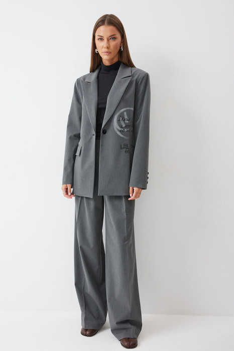 Костюм, состоящий из жакета и брюк.