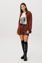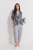 Джемпер прямого силуэта с фигурным низом из трикотажного полотна. Горловина округлая. Рукав со спущенной линией плеча, по низу на манжете. Джемпер со смещенным боковым швом.