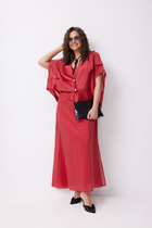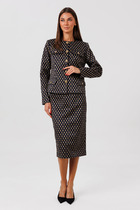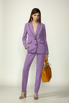 Стильный и элегантный комплект из жакета и брюк. Жакет прямого кроя, на подкладке, с центральной застежкой на пришивные пуговицы. Выполнен из джинсовой ткани в сочетании с рогожкой. Рукав втачной, снизу дополнен притачной манжетой с застежкой на пришивную пуговицу. Воротник отложной. По талии скрытая кулиска с фиксаторами. Брюки свободного кроя, слегка заужены книзу. Посадка средняя. Пояс притачной, дополнен эластичной тесьмой. Брюки дополнены удобными боковыми карманами. Застежка гульфик на молнию и металлическую пуговицу. Брюки выполнены из джинсовой ткани средней плотности. Длина жакета от плечевого шва 75см. Длина рукава 60см. Длина брюк по боковому шву 98 см.