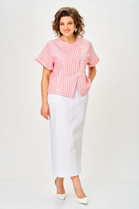 Длина жакета по спинке — 55 см +/- 1 см, длина рукава — 32 см +/- 1 см; длина юбки по боковому шву — 94 см +/- 1 см. Изделие подойдет на рост 170 см.