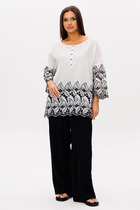 Универсальный костюм, который выглядит дорого и современно, но при этом дарит комфорт и лёгкость. Его можно носить как комплект или по отдельности: жакет с асимметричной застёжкой и акцентными пуговицами легко сочетается с джинсами, а брюки свободного кроя идеально смотрятся с блузой или футболкой.