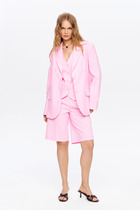 Стильный комплект, состоит из бомбера, майки и брюк. Майка выполнена из вискозы, хорошо тянется и приятная к телу. Горловина округлой формы, окантована, рукав укороченный. Бомбер выполнен из летней ткани, льна-вишера, имеет приятную фактуру, комфортен в ношении. Горловина округлой формы, на обтачке, застежка на кнопки, лиф изделия с отрезной кокеткой, декорированной бусинами. Также на полочке обработаны прорезные карманы с листочкой. Спинка свободного покроя, по низу изделие обработано планкой с резинкой. Рукав втачной, длинный, по низу на манжете, с декором в виде паты, застегивается на кнопку. Брюки-палаццо выполнены из льна-вишера, с застежкой на молнию, верхний срез обработан притачным поясом, с застежкой на пуговицу. На передних полотнищах обработаны карманы в боковых швах, по верху заложены односторонние складки. На заднем полотнище брюк обработаны вытачки, низ с широкой подгибкой. Стильный комплект с эффектным декором и фурнитурой, отличный выбор для летнего гардероба!