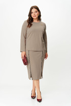 Стильный, женский костюм полу-прилегающего силуэта, выполнен из текстиля, на подкладке. Костюм состоит из жакета и брюк. Жакет на подкладке, с застежкой на планку с пуговицами, горловина округлой формы, с обтачкой декорированной кантом. На полочке обработаны прорезные карманы с листочкой, по низу жакет с планкой, все декорировано кантом. Спинка со средним швом и вытачками, рукав втачной, оптимальной длины, по низу на манжете с кантом. Брюки заужены к низу, верхний срез обработан притачным поясом, застежка по переду на молнию и пуговицу. По переду брюк обработаны складки, в боковых швах карманы. Эффектный костюм классического покроя прекрасный выбор для вашего гардероба.