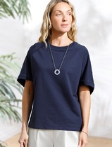 Стильный, женский комплект свободного покроя, выполнен из текстиля и пайеток, состоит из блузы и брюк. Блуза свободного покроя, горловина обработана стойкой из пайеток, по спинке с застежкой на петлю-пуговицу. Полочка и спинка с цельнокроеным рукавом. по низу обработан манжетой из пайеток. Также на полочке обработана кокетка из пайеток. по боковым швам блузы разрезы. Брюки свободного покроя, из основной ткани, верхний срез обработан притачным поясом на резинке и с застежкой на молнию, по поясу на пуговицу. На брюках, в боковых швах, выполнены карманы. Эффектный комплект, который отлично скрывает все нюансы  фигуры, просто находка для ценительниц яркого образа!