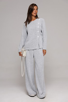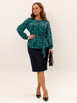 Костюм женский состоящий из жакета и брюк. Жакет без подкладки, свободного силуэта, застегивается на двубортную застежку на 2 кнопки. Воротник "шаль". Рукава цельнокройного покроя с подрезом и отворачивающимся манжетом. По переду накладные карманы. Брюки прямые, прояс на резинке, карманы в боковых швах.