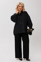 Элегантный женский костюм классического кроя. Комплект состоит из жакета и юбки-карандаш. Жакет полуприлегающего силуэта, спинка со средним швом, заканчивающимся шлицей. По конструкции предусмотрен воротник с лацканами. Застежка на две пуговицы. В передней части предусмотрены два прорезных кармана с листочкой. Рукававтачные, двухшовные, со шлицей на пуговицах. Юбка длиной миди, слегка зауженная к низу. Застежка на молнию в центральном шве. Юбка оснащена крупным декоративным элементом в виде объемных цветов, расположенных по вертикали слева. В левой боковой части юбки размещен разрез от колена до низа, что обеспечивает свободу движения и добавляет элегантности. Жакет и юбка на подкладке.