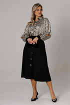 Комплект женский, состоящий из жакета и юбки. Жакет полуприлегающего силуэта, на подкладке, с центральной бортовой застежкой на 2 петли и пуговицы. Воротник отложной, на стойке. Рукав втачной, двухшовный со шлицей по низу и обработан 4-мя декоративными пуговицами. Карманы прорезные с клапаном. Спинка со средним швом. Юбка зауженная к низу. Спинка со средним швом, заканчивающимся разрезом, застежка на тесьму молнию в среднем шве спинки. Верхний срез обработан обтачкой. Юбка на подкладке