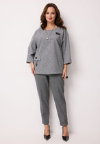 Комплект женский полуприлегающего силуэта состоит из жакета и юбки. Жакет со спущенными рукавами и патами. Перёд жакета с кокетками, накладными карманами с клапанами на застёжках металлических пуговицах. Воротник отложной на стойке с лацканами классической формы. По спинке кокетка и приточная пата с декоративной нашивкой.