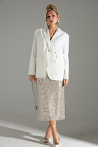 Элегантный женский костюм, состоящий из жакета и прямых брюк, выполнен из костюмной однотонной ткани. Жакет однобортный, на петлях и пуговицах, с английским воротником и клапанами по бокам. Рукав втачной, длина — полная. Посадка свободная, что обеспечивает комфорт и стильный силуэт. Брюки прямого кроя, на частичной резинке по поясу для удобной посадки и идеального прилегания. Костюм на подкладке, лёгкий, приятный к телу и подходит как для повседневной носки, так и для офиса или торжественного выхода.