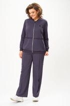 Элегантный женский костюм классического кроя. Комплект состоит из жакета и юбки-карандаш. Жакет полуприлегающего силуэта, спинка со средним швом, заканчивающимся шлицей. По конструкции предусмотрен воротник с лацканами. Застежка на две пуговицы. В передней части предусмотрены два прорезных кармана. Рукава втачные, двухшовные, со шлицей на пуговицах. Юбка длиной миди, слегка зауженная к низу. Застежка на молнию в центральном шве. В левой боковой части юбки размещен разрез от колена до низа, что обеспечивает свободу движения и добавляет элегантности. Жакет и юбка на подкладке. Жакет дополняет декоративная съемная брошь.
