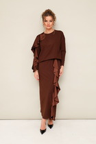 Элегантность с характером. Именно так можно описать одну из новинок от брэнда "МОДА-ЮРС". Она идеально впишется в модный гардероб и подчеркнет вашу естественную красоту. Жакет полуприлегающего силуэта с  фигурными рельефами, переходящими в карман. В жакете фантазийный воротник с декоративными элементами. Застежка центральная на петли-пуговицы. Рукав втачной, двухшовный. Спинка со средним швом и вытачками. Юбка прямая, зауженная к низу, сверху на притачном поясе. Застежка на тесьму-молнию в среднем шве, который переходит в шлицу. Костюм на подкладке.