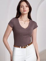 АКЦИЯ "В отпуск!" -15% по 27.04Футболка с V вырезом из эластичного трикотажа каш