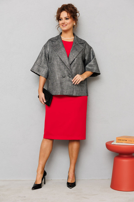 Состав: Жакет- Вискоза-29%; ПЭ-66%; Эластан-5%; Платье- Вискоза-63%; ПЭ-32%; Спандекс-5%;
