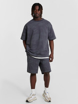 Костюм мужской из трикотажного полотна "кулирка" в комбинации двух видов: гладкокрашенного и с рисунком в крупную клетку, сочетающихся между собой по цвету, состоящий из джемпера и брюк. Джемпер - из гладкокрашеного полотна, свободного покроя, с длинными втачными рукавами и приспущенными плечами, с горловиной овальной формы и тематическим принтом, выполненным в технике шелкографии. Горловина, нижние срезы рукавов и низ изделия обработаны подгибкой с отделочным широким кантом контрастного цвета. Брюки - из полотна в клетку, свободного покроя, прямые, на притачном поясе с эластичной тесьмой внутри, с карманами в боковых швах. Нижние срезы обработаны подгибкой.
