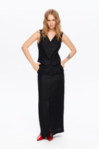 Брюки классические длинные, прямого силуэта, с посадкой на талии, выполнены из трикотажного полотна «велюр». Модель с центральной застёжкой на тесьму-«молнию», на притачном поясе, застегивающемся на петлю и пуговицу. Передние и задние половинки брюк с талиевыми вытачками, направленными от пояса вниз. Спереди обработаны боковые наклонные карманы. Для лучшего прилегания брюк в области талии в поясе по задним половинкам вставлена эластичная лента. Длина брюк по боковому (с поясом)-107 см (52-54 р-р), 108 см (56-60 р-р).
