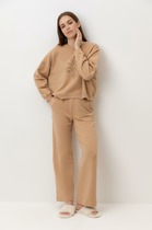 Этот элегантный костюм-двойка создан для женщин, которые ценят комфорт и изысканность в равной мере. Он словно приглашает сиять — мягкий блеск люрекса переливается в свете вечерних огней, создавая атмосферу праздника даже в обычный день.
