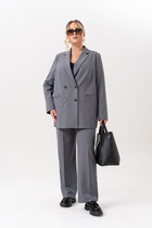 Элегантный комплект, состоящий из брюк и рубашки. Рубашка прямого силуэта, умеренная по объему, длиной до середины бедер. Центральная бортовая застежка на петли и пуговицы. Воротник рубашечный. Спущенная линия плеча. Свободный короткий рукав. Спинка прямая. Изделие без подкладки. Брюки прямые, свободного кроя, без подкладки. Пояс на резинке (без застежки). Карманы в боковых швах.