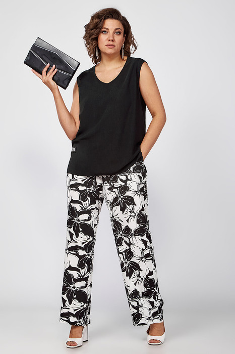 Представляем вашему вниманию идеальный брючный костюм! За счет качественного текстильного материала он легкий и приятный, красиво сидит и удобный в носке. Элементы дизайнерской конструкции, такие как разноуровневый низ майки с разрезами  со спущенным плечом и прямые  штаны с карманами в боковых швах  говорят о том, что он был создан согласно последним модным тенденциям . Поэтому данную классическую модель белорусского производства можно считать актуальной для женщин любого возраста. Шикарно подойдет для любого  случая, его можно сочетать с разными аксессуарами из вашего гардероба для построения эффектных образов на вечер.