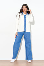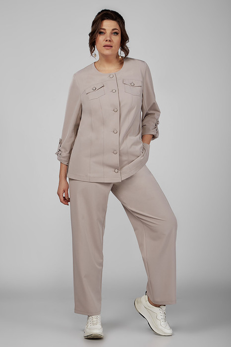 Стильный двухпредметный костюм для женщин из костюмной ткани "гальяно" - это идеальное сочетание комфорта и элегантности. Такой костюм подходит как для офисного делового образа, так и для повседневного ношения. Жакет костюма выполнен в классическом стиле на пуговицах, без воротника и с накладными карманами. Рукав длинный на манжете с патой на петлю и пуговицу. По боковым швам обработаны разрезы. Брюки костюма имеют прямой крой в стиле "палаццо", что позволяет создать строгий и элегантный образ. Карманы на брюках расположены по бокам, что добавляет практичность и функциональность. Пояс брюк на резинке. Этот костюм не только обеспечит Вам ощущение комфорта в любой ситуации, но также придаст изящность и женственность Вашему образу. Если к костюму добавить из Вашего гардероба белую нарядную блузу -  получится нарядный комплект.